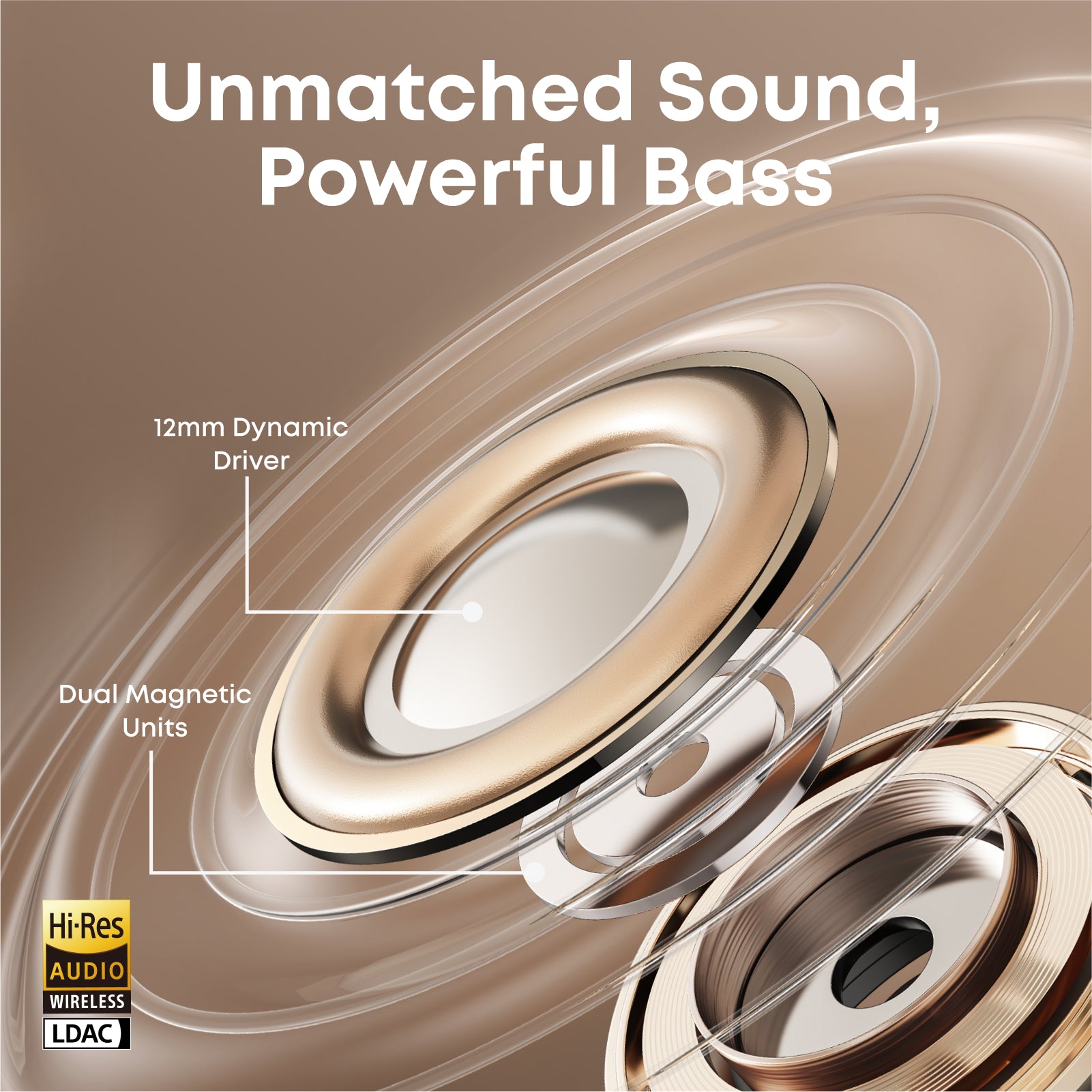 Clearer Audio, Richer Bass: Enjoy ultra-clear, rich bass sound with in-ear-level quality. Our advanced virtual bass technology enriches the lows, complemented by a 12mm × 12mm titanium-coated driver for precise listening.