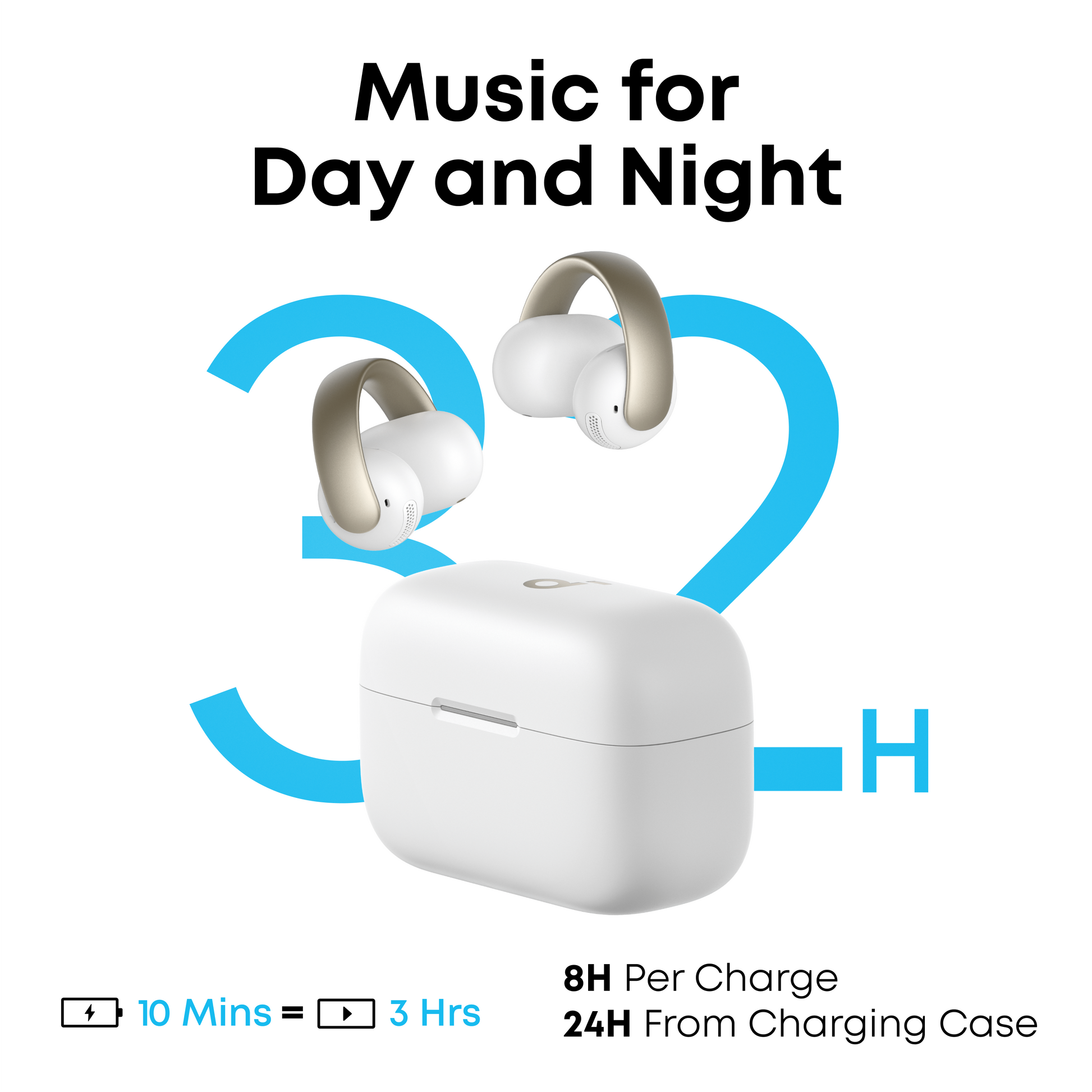 Effortlessly Chic: Your style, your vibe. In three vibrant colours, these open-ear clip-on earbuds deliver incredible audio with a touch of flair.