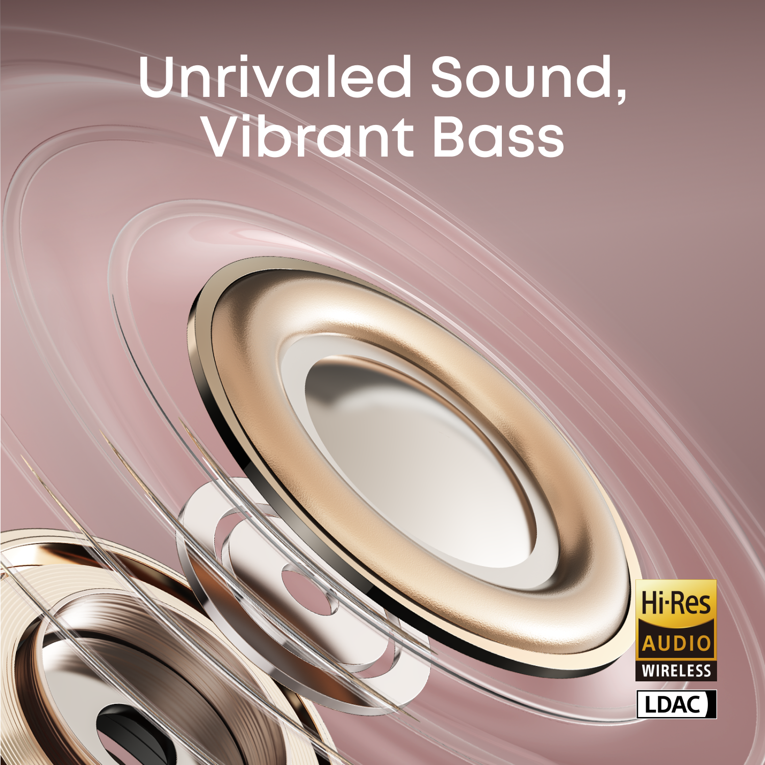 Hi-Res Audio, Vibrant Bass: Enjoy Hi-Res audio and deep bass for detail-rich sound. Our advanced virtual bass technology powers out the lows, powered by a 12-milimetre titanium-coated driver for crisp, balanced mids and trebles.Note: Update the soundcore app to the latest version for the best listening experience.