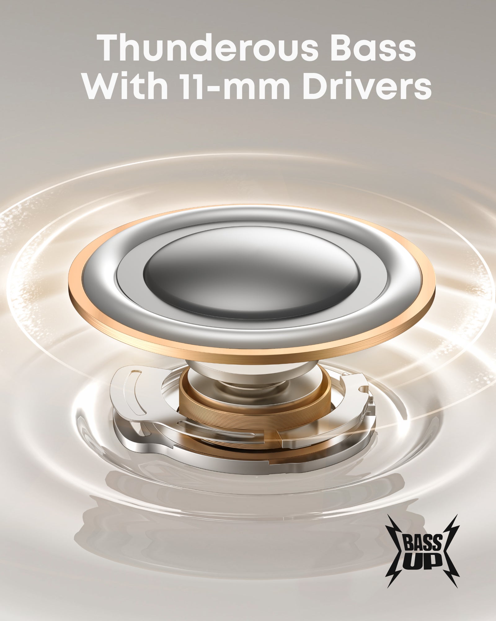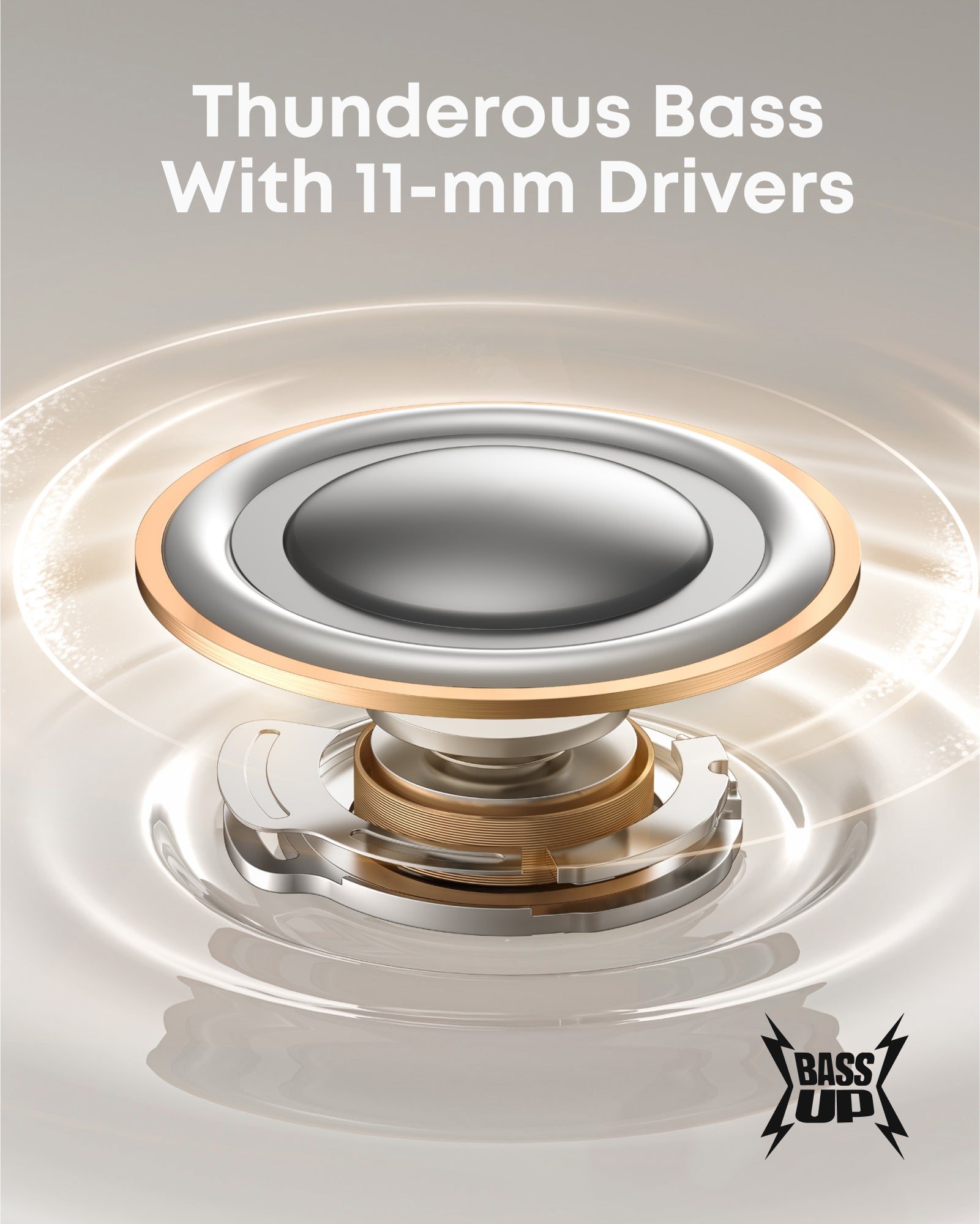 - Thunderous Bass: Powerful 11-mm composite drivers deliver captivating sound enhanced by BassUp technology for intense, high-impact bass.