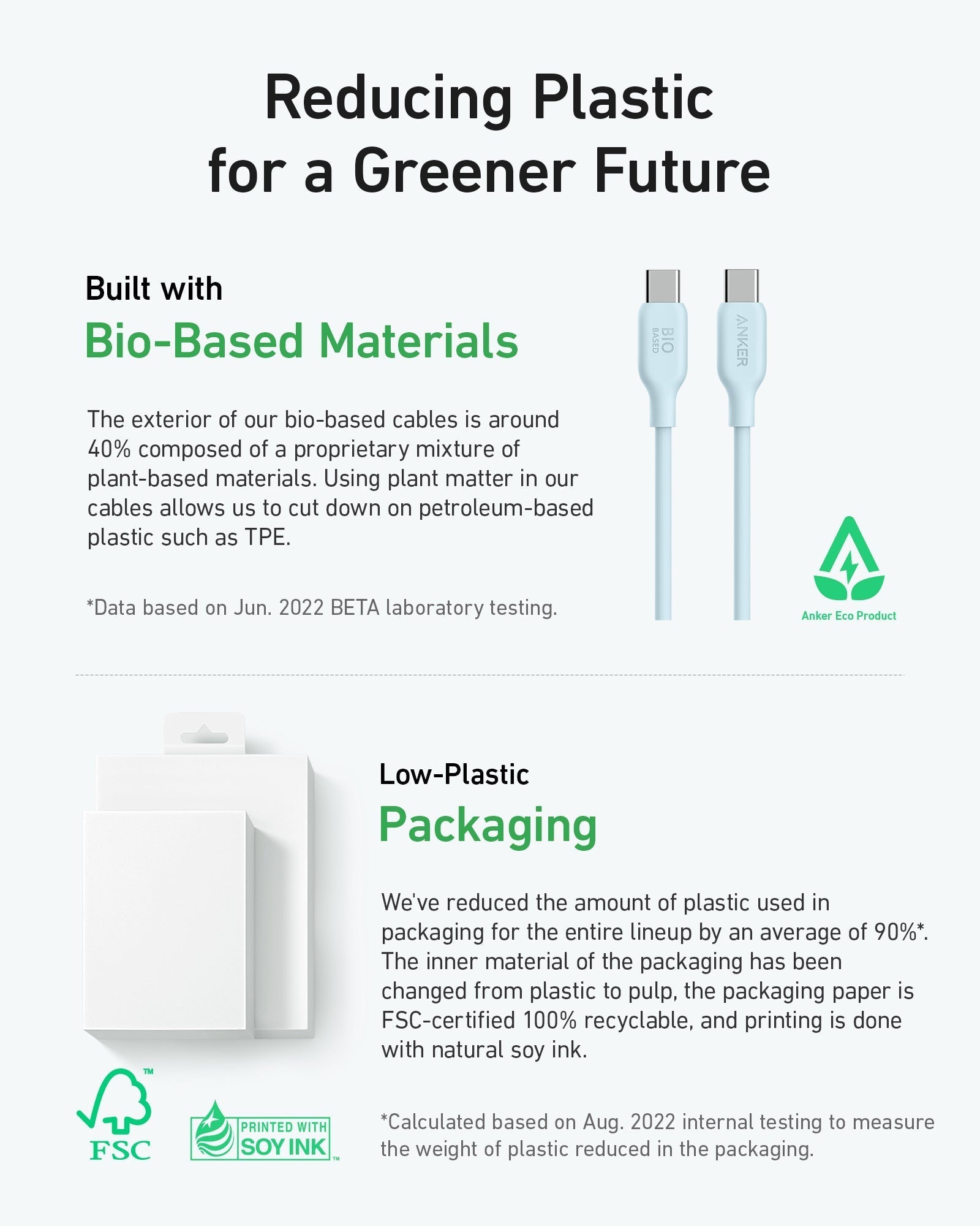 - Bio-Based Design: The exterior of the cable body is built using bio-based materials from plants like corn and sugar cane.