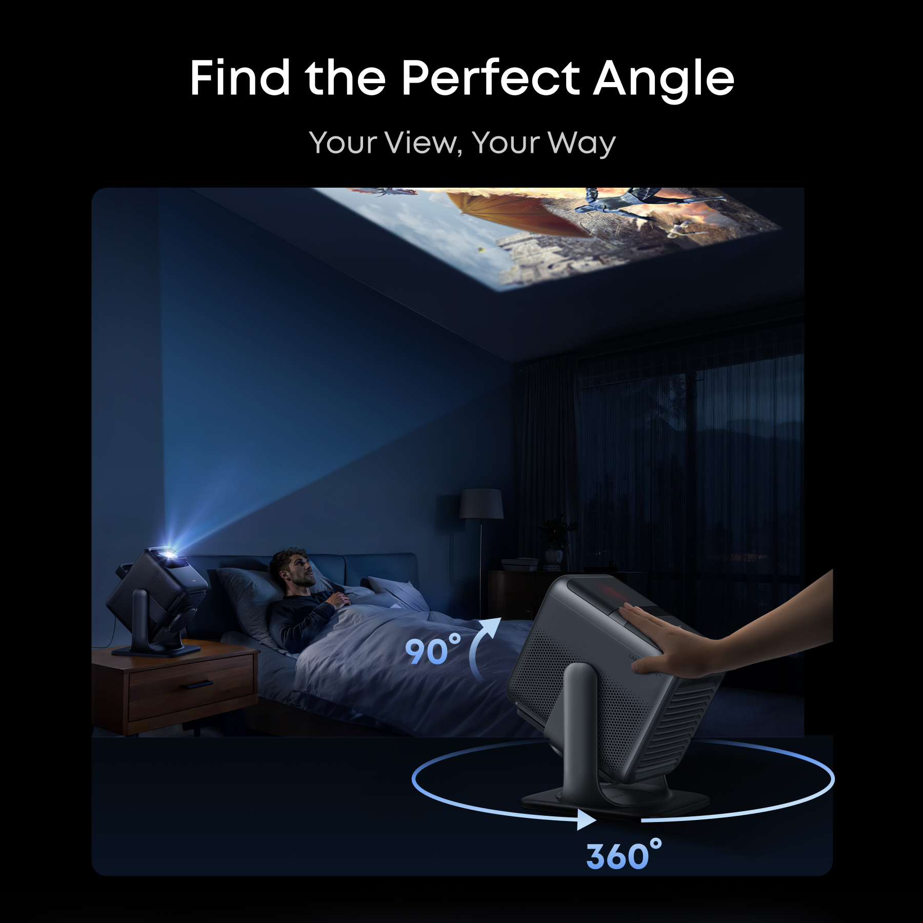 Flexible Viewing Angles: Supports 360° horizontal and 90° vertical adjustment to unlock a wider range of viewing angles. Easily project onto your bedroom ceiling and more.