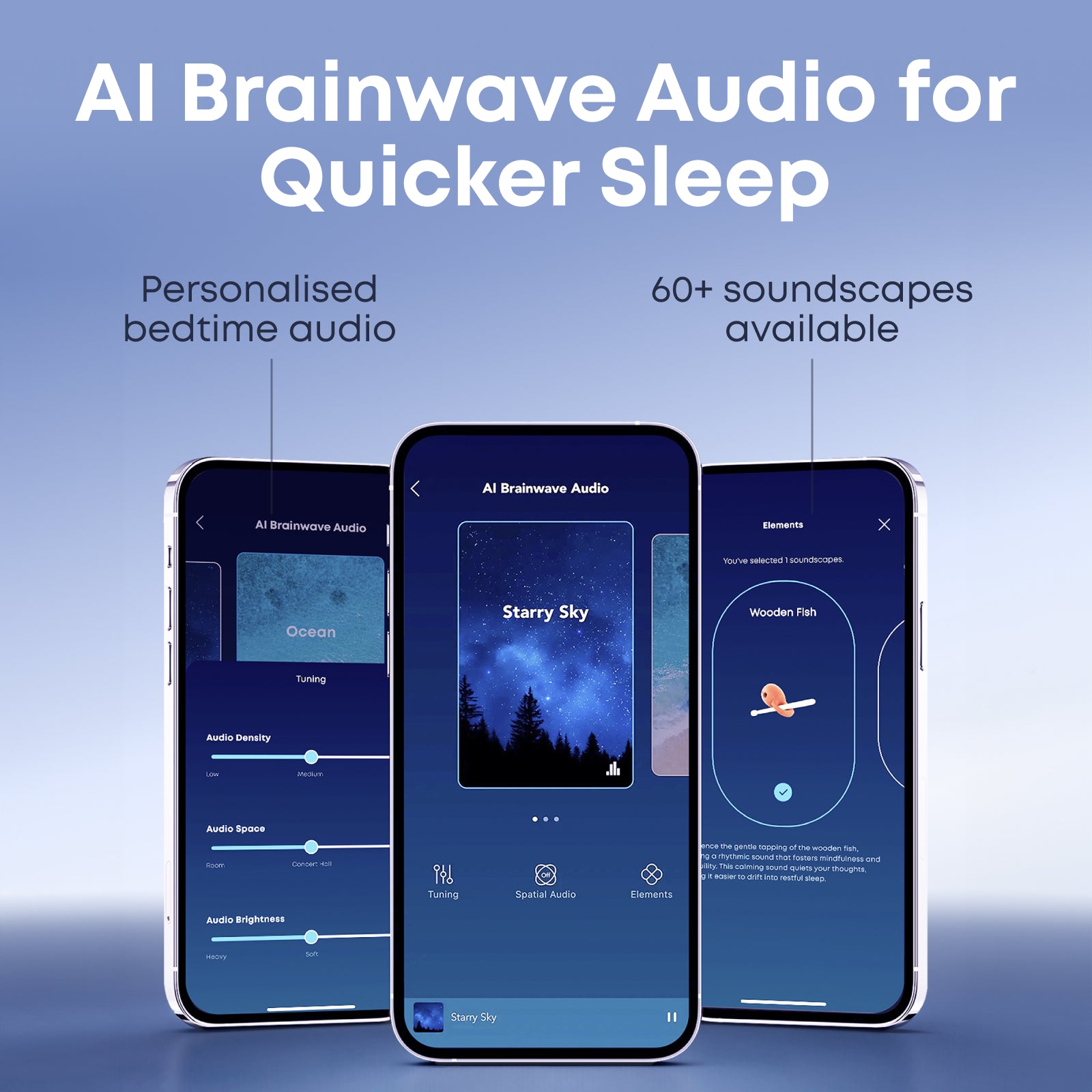 - Real-Time Adaptive Snore Masking: When your charging case detects snoring, the earbuds optimise the snore-masking audio to block the noise and help you sleep through your partner's snoring.